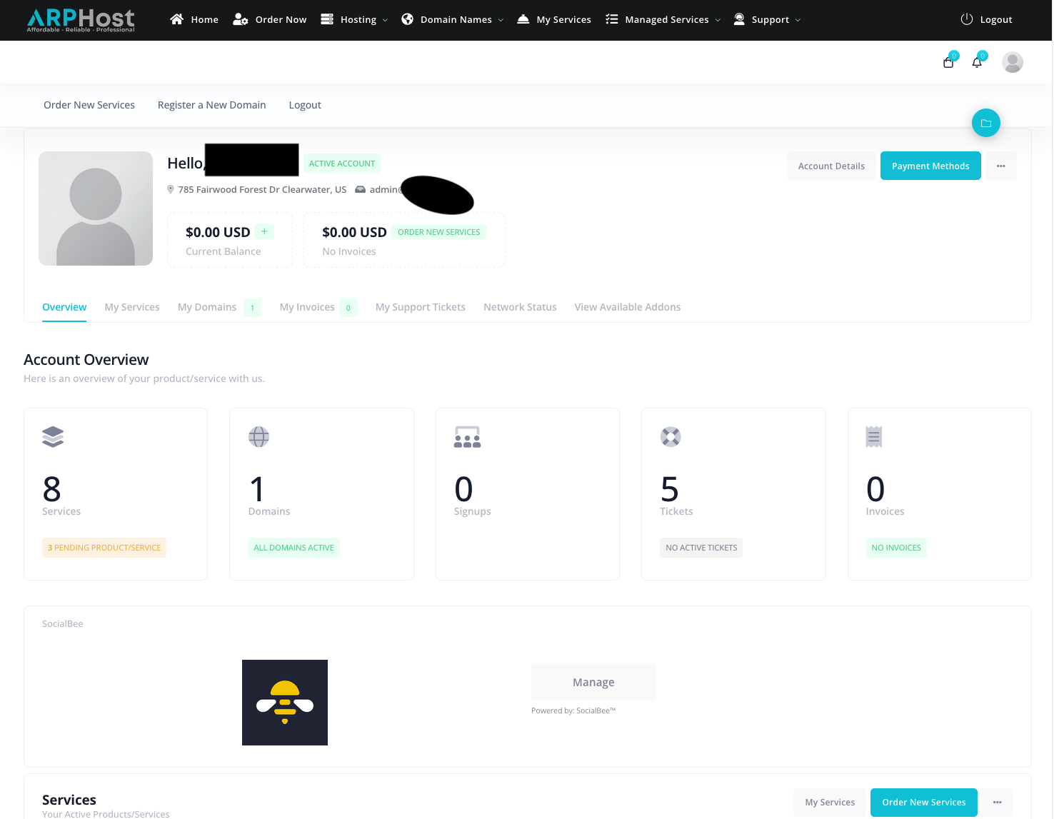 - Login to the ARPHost Panel at https://arphost.com/index.php/login