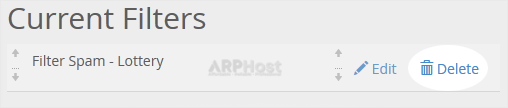 3. Under Current Filters are displayed all existing filters. Click Delete next to the appropriate one.