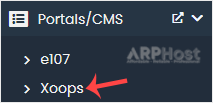 4. On the left side, type Xoops in the search box, then click the Xoops link that appears.